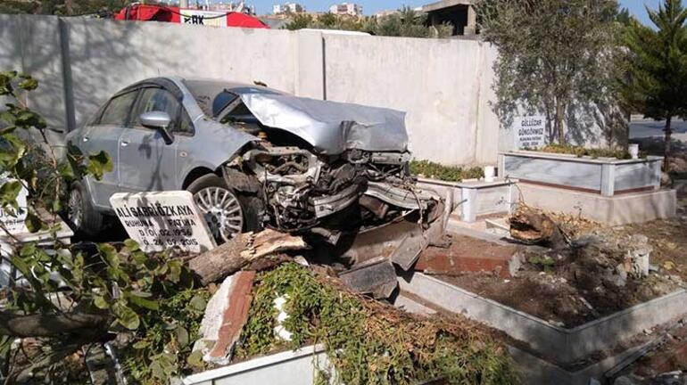 İzmir’in Çiğli ilçesinde, sürücüsünün direksiyon hakimiyetini kaybettiği otomobil, yol kenarındaki mezarlığa girdi. 6 mezara zarar veren otomobilin sürücüsü kazayı hafif sıyrıklarla atlattı.