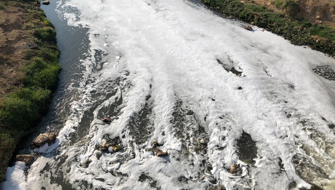 Mardin’in Kızıltepe ilçesine bağlı Demirkapı köyünde Zergan Deresi’den yükselen köpükler tedirginliğe sebep oluyor. Dereye giren bir çocuğun da hastanelik olduğu iddia edildi.