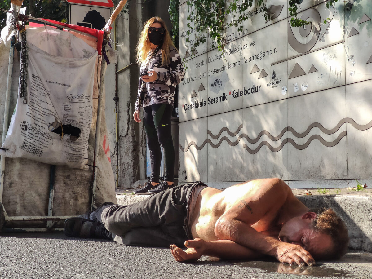 Yoldan geçen vatandaşlar şaşkın bakışlarla yerde yatan kişiyi izledi. Bir süre sonra olay yerine gelen sağlık ekipleri yerde yatan kişiye müdahale etmek istedi. Bu sırada birden ayılan kişi sağlık ekiplerine saldırdı. Araya giren zabıta ve polis ekipleri bayılan kişiyi sakinleştirmeye çalıştı. Polis ekipleri yerde yatan kişiye maske vermek istedi. Maske de takmayıp ekiplere saldıran kişiye polis ve zabıta tarafından müdahale edildi. Güçlükle polis aracına konulan kişi polis merkezine götürüldü. Beşiktaş Polis Merkezi’nde güçlükle araçtan indirilen kişi, karga tulumba içeri götürüldü.