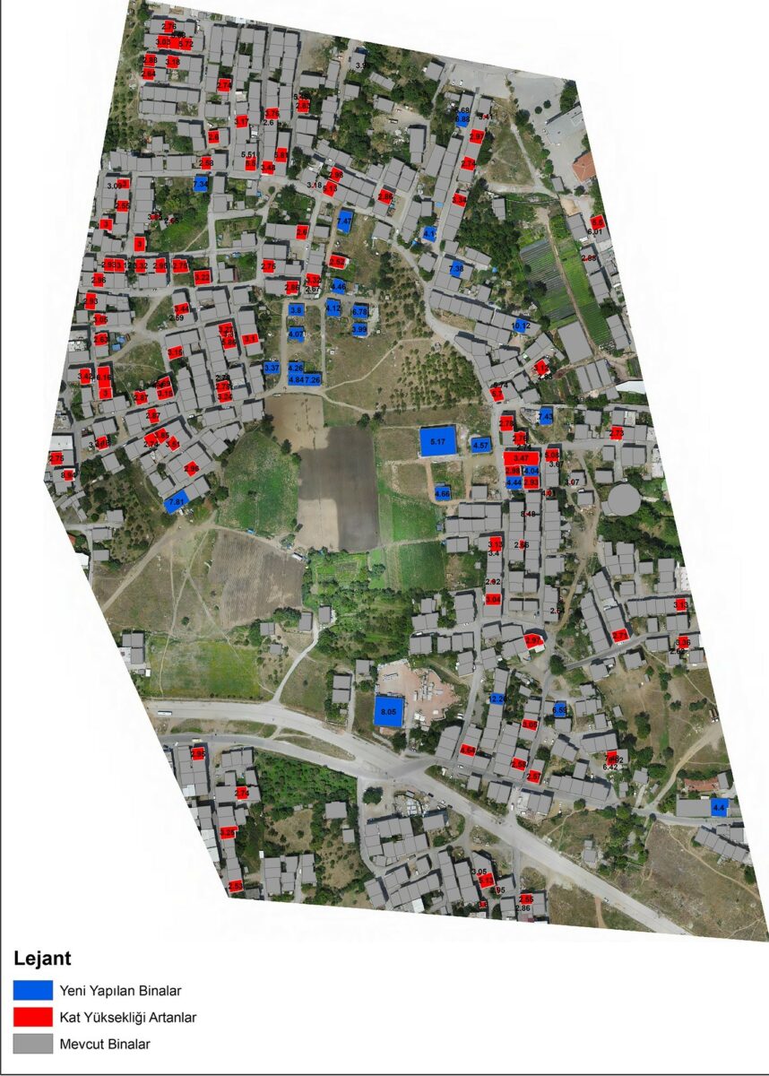 Tespit edilen bu kat artışları harita üzerinde işaretlenerek, yapının ruhsatlı mı yoksa kaçak mı olduğunun tespit edilmesi için konu fotoğraflarla ilgili ilçe belediyelerine aktarıldı.