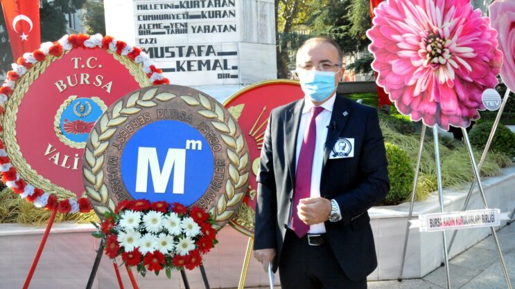 Ölümünün 82’nci yılında O’nu ilk günkü sevgi, saygı, minnet ve sonsuz özlemle anıyoruz. O’nu ve bizim için yaptıklarını unutmadık, unutmayacağız. 10 Kasım sabahlarının verdiği hüznü; O’nu her geçen gün daha fazla anlayarak, ilkelerini yaşatarak sonsuz minnet ve özleme dönüştürmeye devam edeceğiz” dedi. Çelenk töreni programı, BSMMMO Başkanı Doğan Yılmaz’ın konuşmasının ardından hatıra fotoğrafı çekilmesi ile sona erdi.