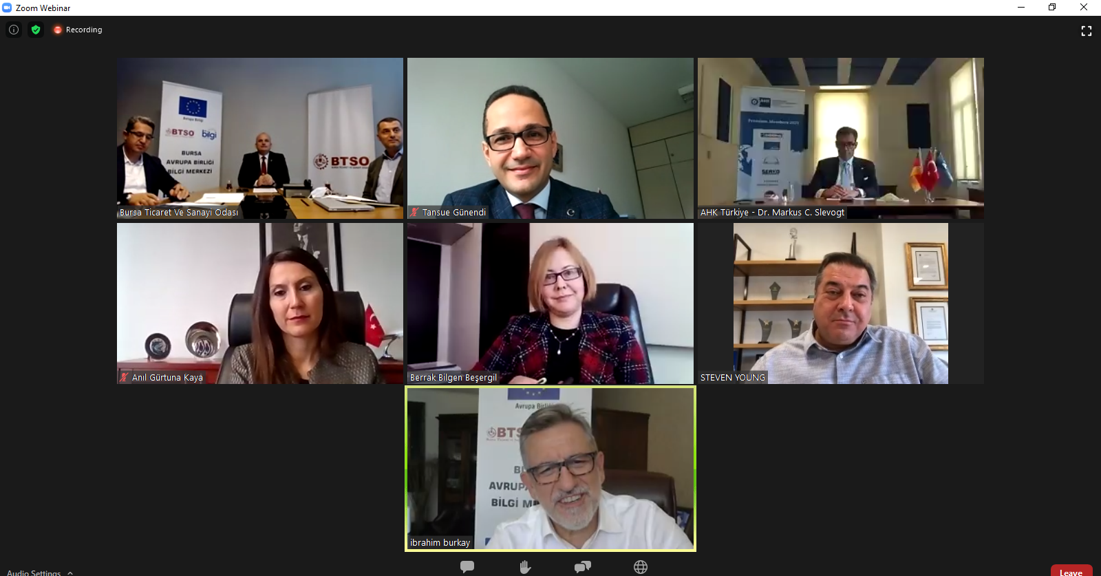 Bursa Ticaret ve Sanayi Odası (BTSO) tarafından COVID-19 salgını döneminde Bursa iş dünyasını hedef pazarlardaki mevcut durum hakkında bilgilendirmek amacıyla düzenlenen online seminerler, Almanya programı ile devam etti.