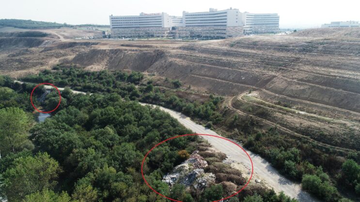 Bursa Şehir Hastanesi’nin alt kısmında bulunan atıklar hem çevreyi hem de tarımsal sulamada kullanılan Nilüfer Çayı’nın kirlenmesine sebep oldu.