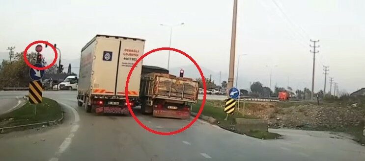 Bursa’da yolda seyir halindeyken tırı sollayan kamyon kırmızı ışık ihlali yaptı. O anlar ise araç kamerasına yansıdı.