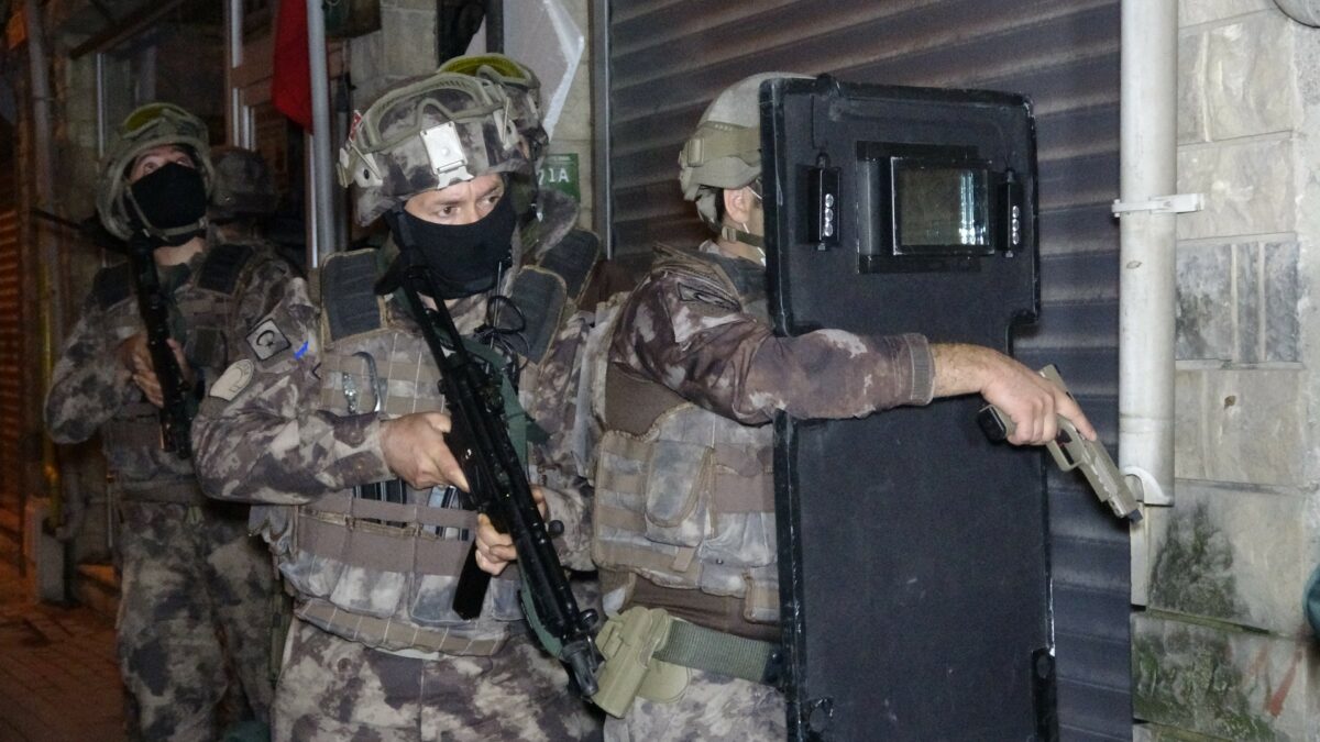 Kapıların koçbaşıyla kırıldığı baskında çok sayıda şüpheli gözaltı alındı.