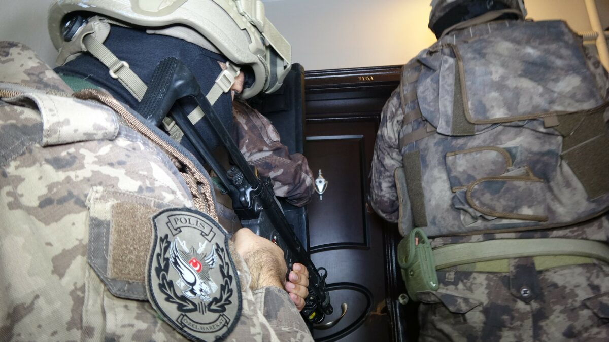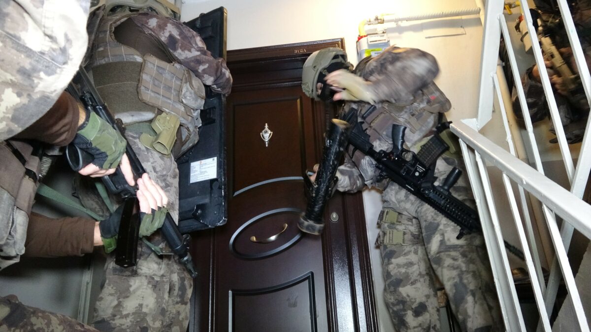 Kapıların koçbaşıyla kırıldığı baskında çok sayıda şüpheli gözaltı alındı.