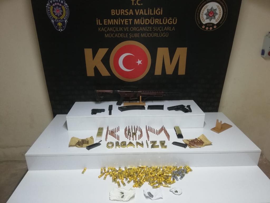 Bursa İl Emniyet Müdürlüğü Kaçakçılık ve Organize Suçlarla Mücadele Şube Müdürlüğü ve Organize Suçlar Büro Amirliği ekipleri tarafından yapılan eş zamanlı operasyonda, suç işlemek maksadıyla silahlı örgüt kurmak üye olmak, yönetmek, örgüt halinde nitelikli yağma, tehdit ve yaralama suçları işledikleri iddia edilen biri polis 7 kişi yakalanarak gözaltına alındı. Şüphelilerin ikametlerinde yapılan aramalarda 2 adet kuru sıkı tabanca, 1 adet av tüfeği, 200 adet 9 mm çapında fişek, 124 adet 7,62 çapında fişek, 66 adet kuru sıkı tabanca fişeği ve 105 adet av fişeği ele geçirildi. Emniyetteki işlemlerinin ardından adliyeye sevk edilen 4 şüpheliden polis memuru S.S. ile birlikte G.B. ve R.A. tutuklanırken, şüpheli Y.B ise adlî kontrol şartıyla serbest bırakıldı.