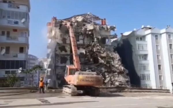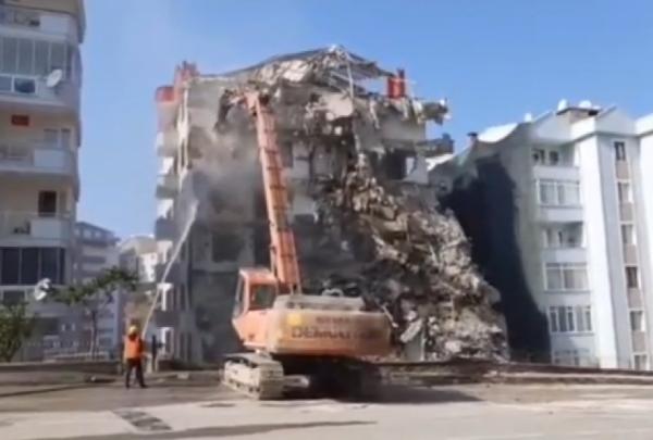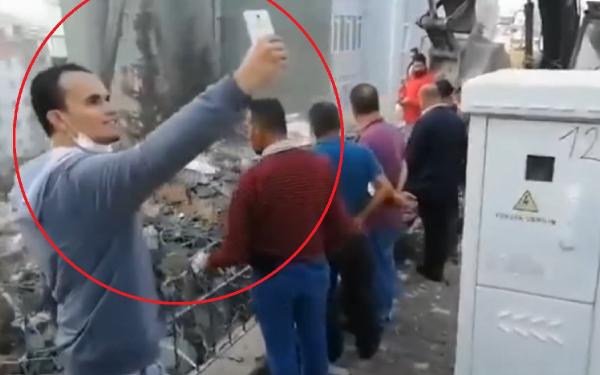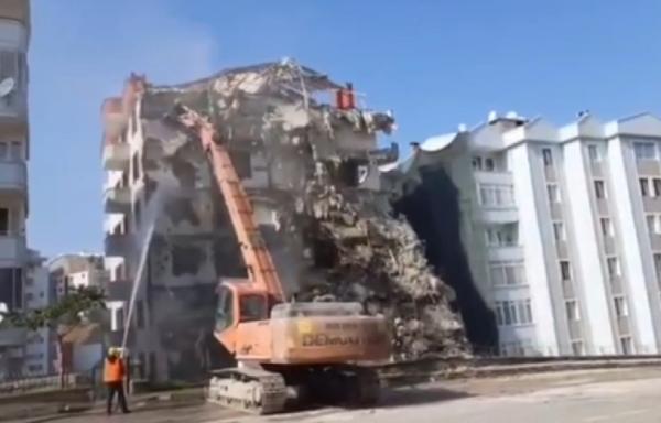 Bina çökmeden önce yapılan yıkım çalışmalarına ve yıkımdan sonrasına ait görüntüler ortaya çıktı. Görüntülere, bir iş makinesinin binanın üst katlarını yıktığı, bir görevlinin binaya su tuttuğu ve bina yıkıldıktan sonra bir kişinin enkazın önünde özçekim yaptığı anlar yer aldı.