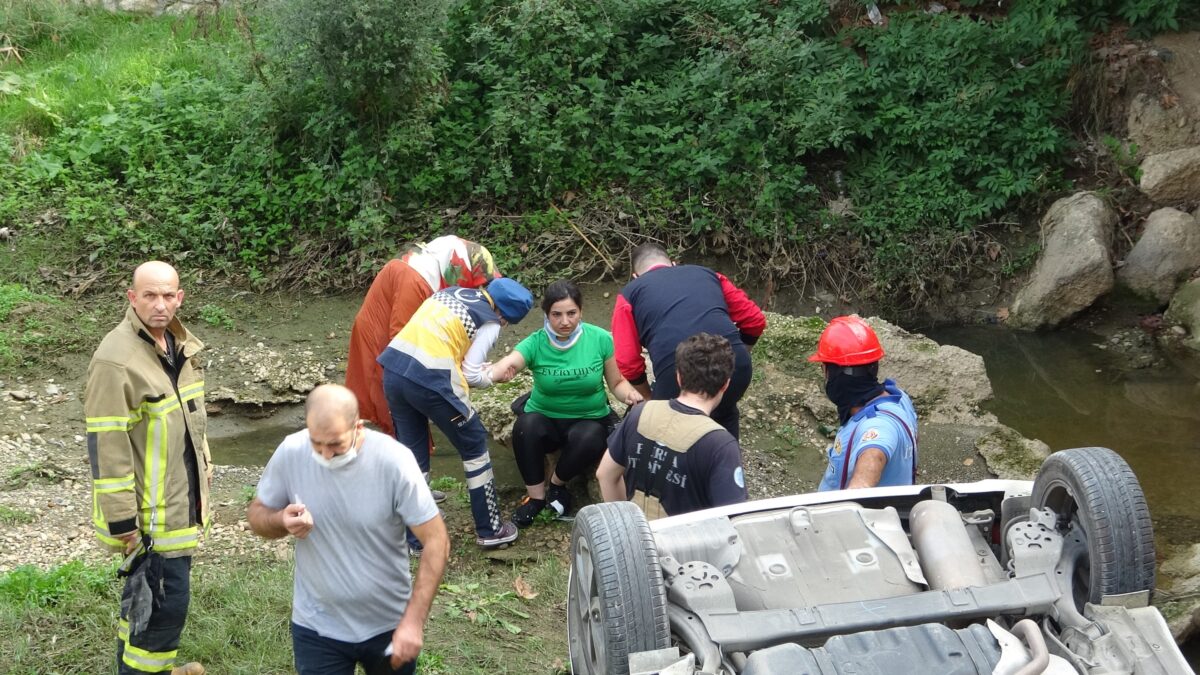 Bursa’da araç dereye uçtu , burunları bile kanamadı
