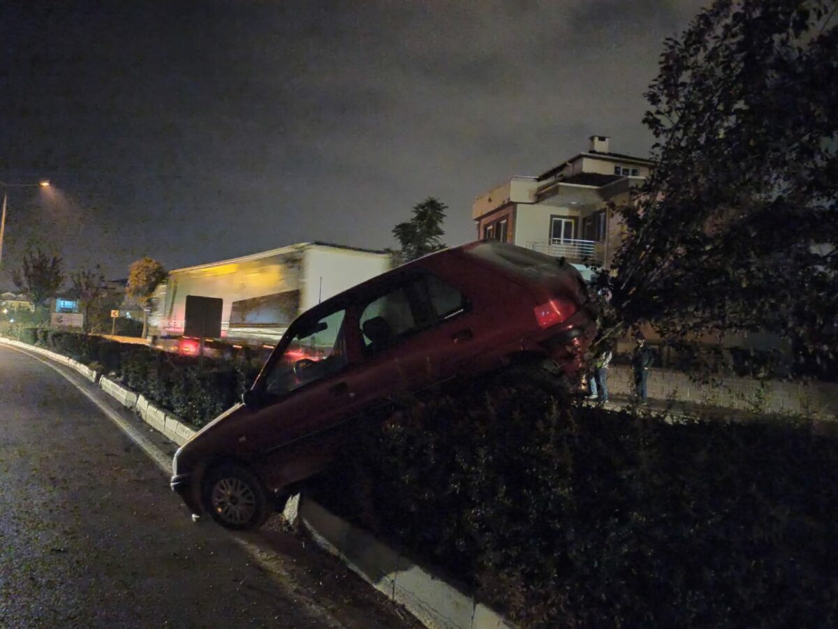 Bursa’nın İnegöl ilçesinde, sürücüsünün direksiyon hakimiyetini kaybettiği otomobil, orta refüjdeki ağaçlara çarparak, bariyer üzerinde asılı kaldı. Kazayı sürücü yara almadan atlatırken, otomobil, çekiciyle bulunduğu yerden kaldırıldı.