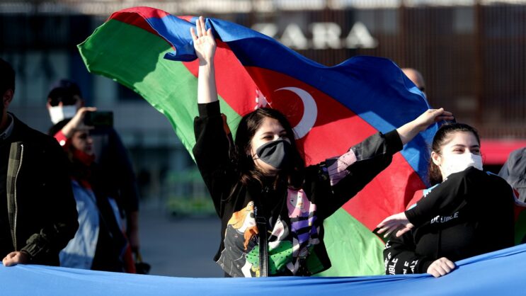 Azerbaycan’ın Dağlık Karabağ zaferi Bursa’da kutlandı. Dev Azerbaycan bayrağı açan Azeri Türkler sloganlarla şarkılarla zaferi coşkusunu yaşadı.