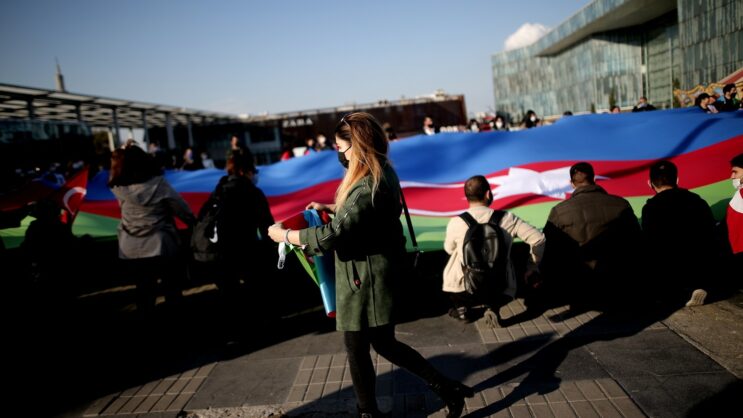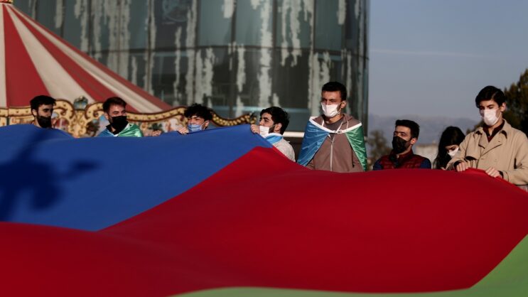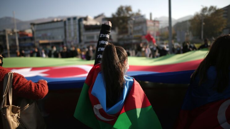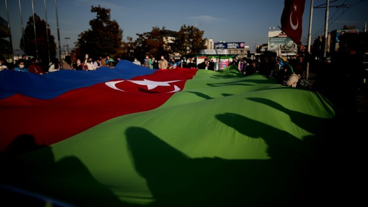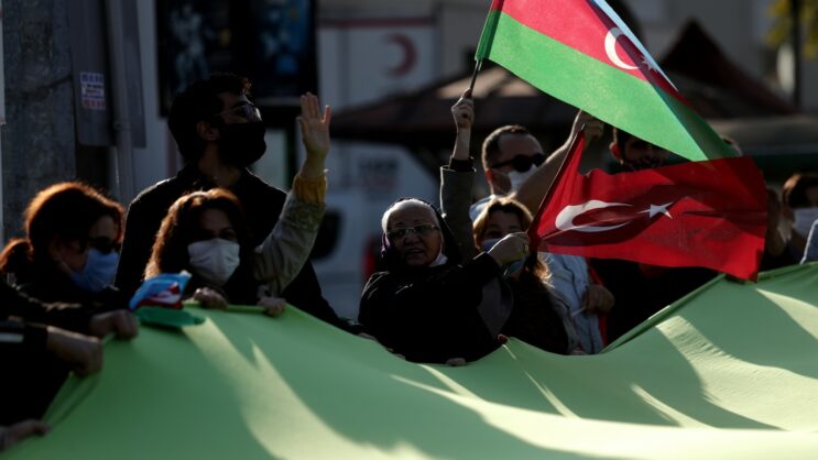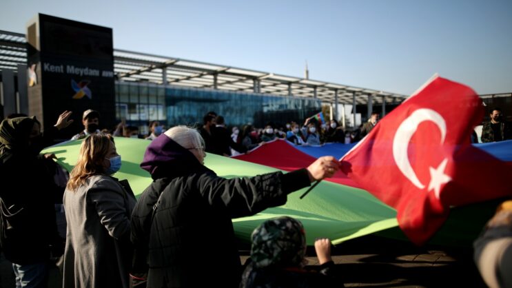 Azerbaycan’ın Dağlık Karabağ zaferi Bursa’da kutlandı. Dev Azerbaycan bayrağı açan Azeri Türkler sloganlarla şarkılarla zaferi coşkusunu yaşadı.