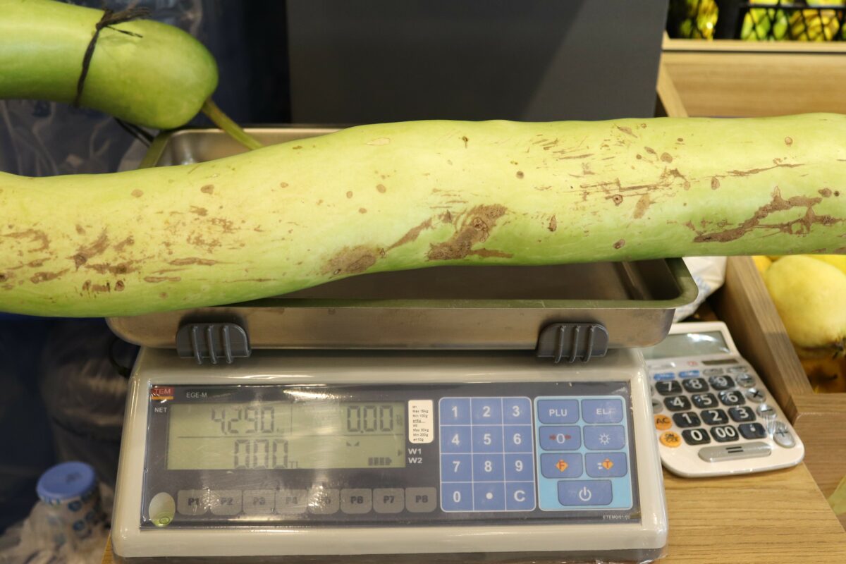 Güvem Mahallesi’nde Ramazan Şen tarafından üretilen kabak, normal boyutlarının çok üzerinde. 4 kilo 290 gram ağırlığında, 1 metre 38 santimetre uzunluğunda olan kabak, Mustafakemalpaşa’da Orhan Yıldız tarafından işletilen Yıldız Çiftliği’nde satışa çıkarıldı.