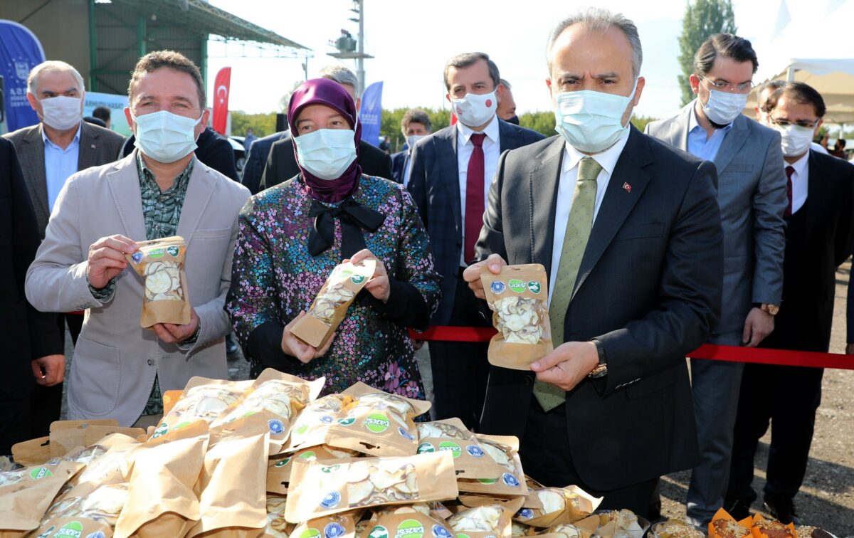 Bursa’da kırsal kalkınmanın sağlanması hedefiyle farklı projelere imza atan Bursa Büyükşehir Belediye Başkanı Alinur Aktaş, törende yaptığı konuşmada, sanayi şehri, ihracat ve üretim şehri olan Bursa’nın aynı zamanda bir tarım kenti olduğunu vurguladı. Bursa’da üretilen katma değeri yüksek tarım ürünlerini dünyaya pazarlamanın derdi ve heyecanı içinde olduklarını dile getiren Başkan Aktaş, “Bunun için tanıtım çok önemli. Bu konuda daha kat edeceğimiz çok ama çok mesafe var. Özellikle armudu yaş meyve olarak değil, endüstriyel ürün olarak, bazen kurutarak, bazen pasta ve benzeri ürünlerle harmanlayarak bu ürünü bütün Türkiye’ye hatta bütün dünyaya pazarlamamız gerekiyor. Bu konuda Büyükşehir Belediyesi olarak Tarım A.Ş. şirketimizle birlikte önemli çalışmalar yapıyoruz. Pandemi süreci nedeniyle yapamasak da uluslararası fuarlarda ürünlerimizi tanıtıyoruz. Eğitimle, bilinçlenme ile kalite ve standartlara uygunluk anlamında verimi yükseltmeliyiz. Şunu kesinlikle unutmayalım bizim pazarımız sadece Bursa, Marmara Bölgesi veya Türkiye değil, bütün dünya bizim pazarımız” dedi.