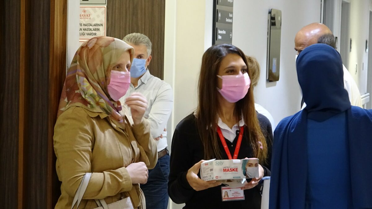Meme kanseri farkındalık ayı kapsamında Özel Hayat Hastanesi farklı bir faaliyete imza attı. Meme kanserini temsil eden pembe renkli maskeleri takan hastane yönetimi, personelin yanı sıra gelen kadınlara da maske hediye etti.