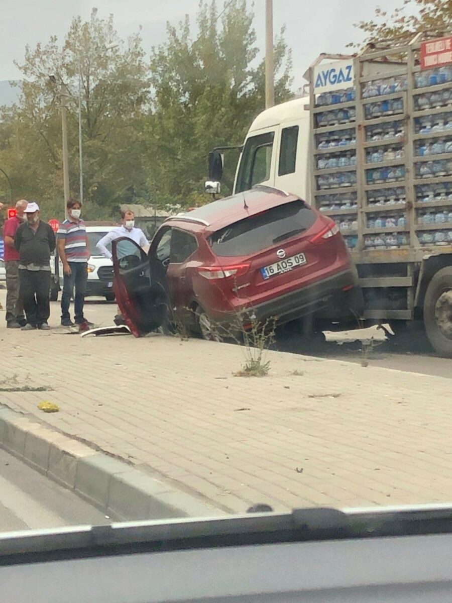 Kaza, geçtiğimiz gün merkez Osmangazi İlçesi Demirtaş Barajı yolunda meydana geldi. İddiaya göre sol şeritte seyir halinde ilerleyen otomobil arkasında yüzlerce tüp yüklü kamyonun çarpması sonucu kaldırıma çıktı.