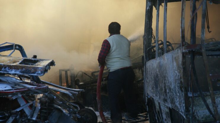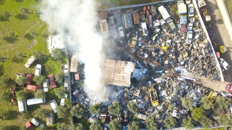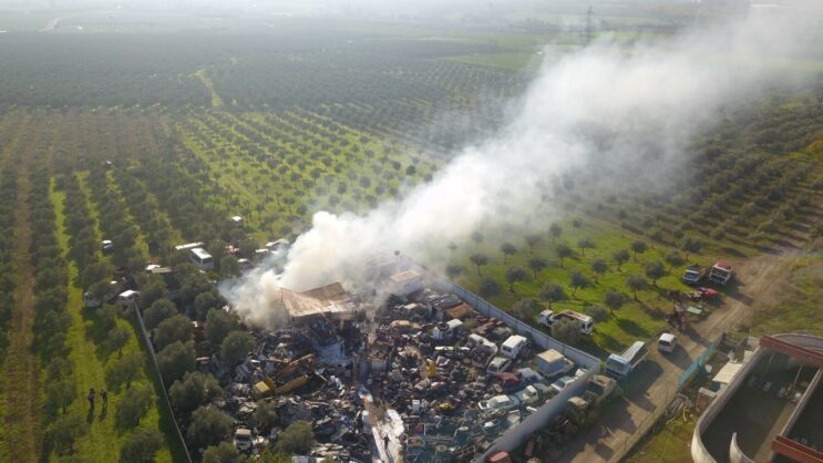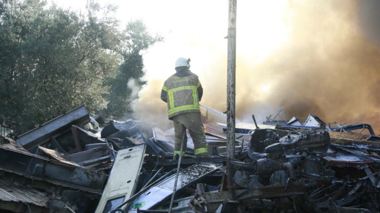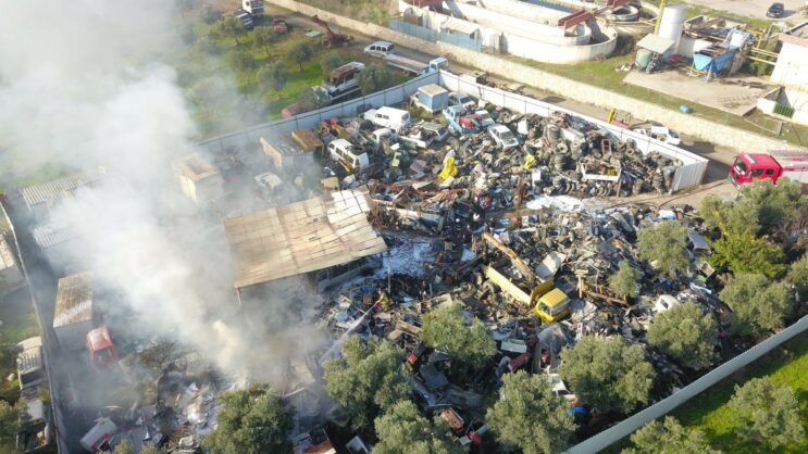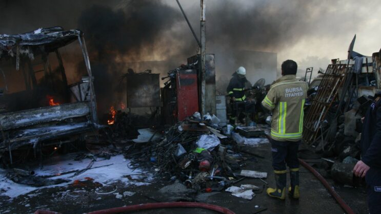 Bursa’da bir hurda deposunda kaynak yapıldığı esnada çıkan yangın kısa sürede hurdalığa yayıldı. Alevler ve kara dumanların yükseldiği hurdalıktaki yangın itfaiye ekiplerinin yaklaşık 45 dakikalık müdahalesi ile kontrol altına alındı. Yangında ölen ya da yaralanan olmazken, büyük çapta maddi hasar meydana geldi.