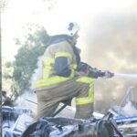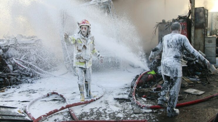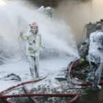 Öte yandan, yangına müdahale esnasında itfaiye hortumlarının metaller tarafından kesilmesi sonucu hortum patladı. Patlayan hortumlardan çıkan köpükler ise itfaiye erlerine zor anlar yaşattı.