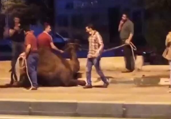 Bursa’da, 14 Ekim günü akşam saatlerinde merkez Yıldırım ilçesi 11 Eylül Bulvarı’nda 16 ACM 893 plakalı kamyonetin arkasında koşturulan deveyi görenler, durumu polis ekiplerine bildirdi. İhbarın ardından Yavuz Selim Polis Merkez Amirliği ve Yıldırım devriye ekipleri kamyoneti bulmak için çalışma başlattı. Trafikteki sürücüler, durumu fark edip aracın önünü keserek polisin gelmesini bekledi. Gelen polis ekipleri, sürücü Ahmet J.’yi araçtan indirip, deveyi de bağlı olduğu yerden çözdü.