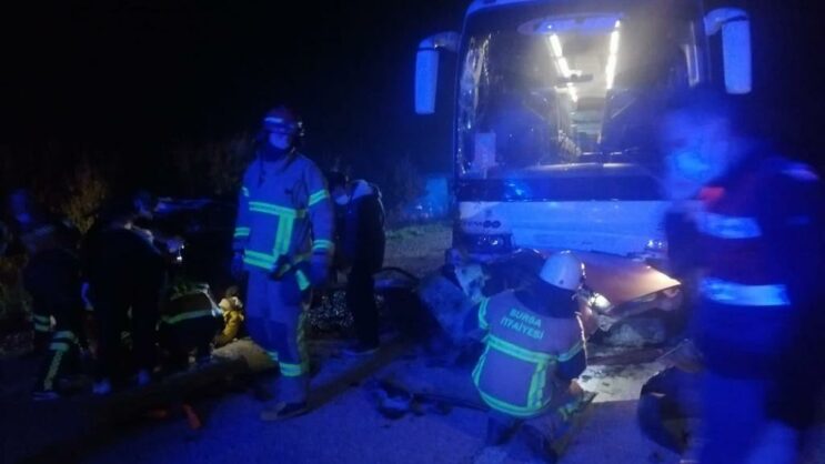 Bursa’nın İnegöl ilçesinde meydana gelen kazada, sürücüsünün kontrolünü kaybettiği otomobil karşı şeride geçerek servis otobüsüyle kafa kafaya çarpıştı. Kazada 2 kişi hayatını kaybetti.