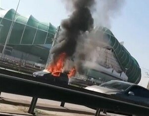 O anlar yoldan geçen sürücüler tarafından cep telefonlarıyla anbean kaydedildi. İhbar üzerine gelen itfaiye ekipleri tarafından yangın söndürülürken sürücü ifadesine başvurulmak üzere polis merkezine götürüldü