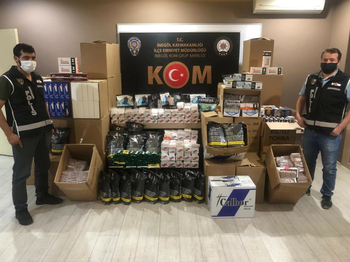 İnegöl Emniyet Müdürlüğü Kaçakçılık ve Organize Suçlarla Mücadele Grup Amirliği, kaçak tütün satışı yapıldığı tespit edilen iki iş yeri ve bir depoya operasyon düzenledi. Operasyonda çok sayıda kaçak ürün ele geçirildi.
