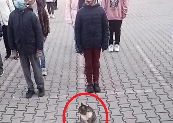 İnegöl’de sabah saatlerinde Dumlupınar Ortaokulu’nun bahçesinde toplanan öğrenciler, derse başlamadan önce İstiklal Marşı’nı okudu. Bu sırada öğrencilerin yanında duran bir sokak kedisi, marş bitene kadar yerinden kıpırdamadı. Kedinin marş boyunca hareket etmemesi öğretmen ve öğrencilerin dikkatini çekti. Cep telefonu kamerasıyla kaydedilip, sosyal medyada paylaşılan o anlar beğeni topladı.