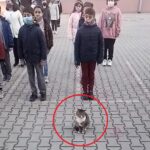 Bursa’da, Dumlupınar Ortaokulu’nun bahçesinde, öğrenciler İstiklal Marşı okuduğu sırada kıpırdamadan duran kedi dikkat çekti. O anlar cep telefonu kamerasıyla görüntülendi.