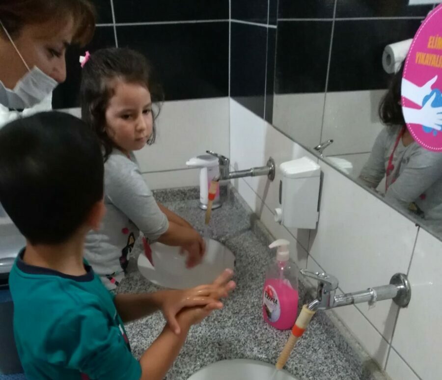 Nene Hatun Anaokulu öğrencilerine yönelik düzenlenen eğitimde bilhassa koronavirüs salgınından ve diğer hastalıklardan korunmanın kilit noktalarından olan kişisel hijyen ve el temizliğinin sağlığı korumadaki önemine işaret edildi.