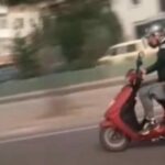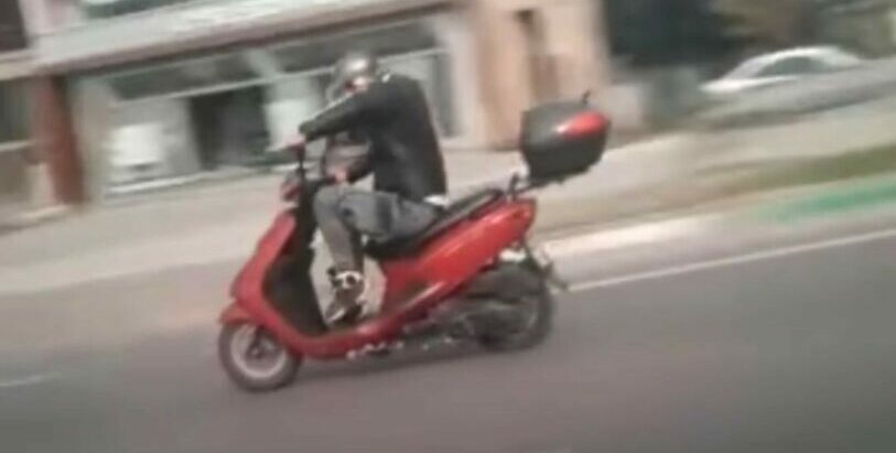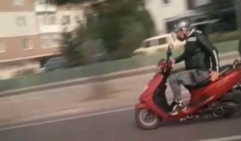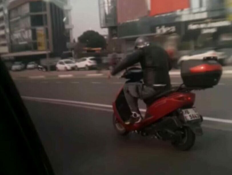 Motosikletini at koşturur gibi süren sürücü ara sıra “elinde kamçı varmış” gibi hareket yapıp motosikleti daha hızlı gitmesi için kamçıladı.