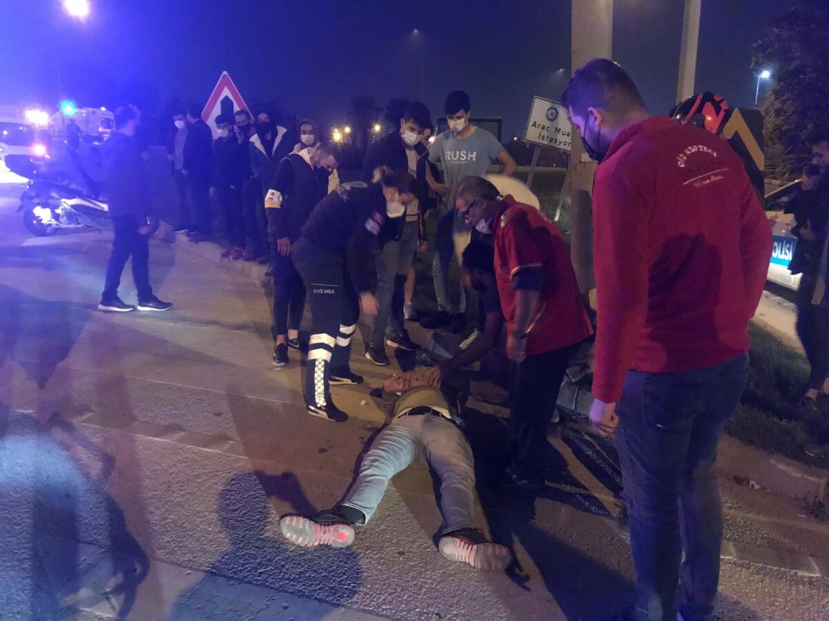 Kaza sonucu yaralanan motosiklet sürücüsünün yardımına kazayı görenler yetişti. İhbar üzerine olay yerine sağlık görevlileri sevk edildi. Yerde yatan yaralıyı gören bir başka sağlık personeli yaralıya müdahale etti. Ardından gelen diğer sağlık çalışanları tarafından ambulansla hastaneye götürüldü. Yaralının sağlık durumunun iyi olduğu kazayla ilgili soruşturmanın ise sürdürüldüğü öğrenildi.
