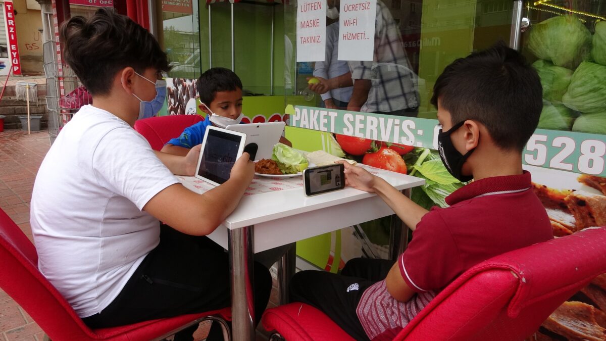 Yıldırım ilçesi Eflak Caddesi’nde çiğ köfte dükkanı bulunan Tugay Bozkurt, 2020- 2021 eğitim ve öğretim yılının başlamasıyla birlikte uzaktan eğitim alan öğrencilere yardımcı olmak için gün içerisinde onlara iş yerini açtı. Bozkurt’un astığı ilanı gören çocuklar, iş yerine gelmeye başladı.