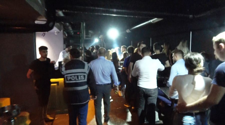 Hemen harekete geçen ekipler, 60 polis ile gece kulübüne baskın düzenledi. İlçe Emniyet Müdürü İbrahim Aslan’ın bizzat yönettiği baskında, işletmede bulunan onlarca kişinin maske takmadığı, sosyal mesafe kuralına uymayıp, yüksek müzik eşliğinde dip dibe dans ettiği görüldü. DJ eşliğinde eğlenen kalabalık, polisi görünce büyük şok yaşadı.