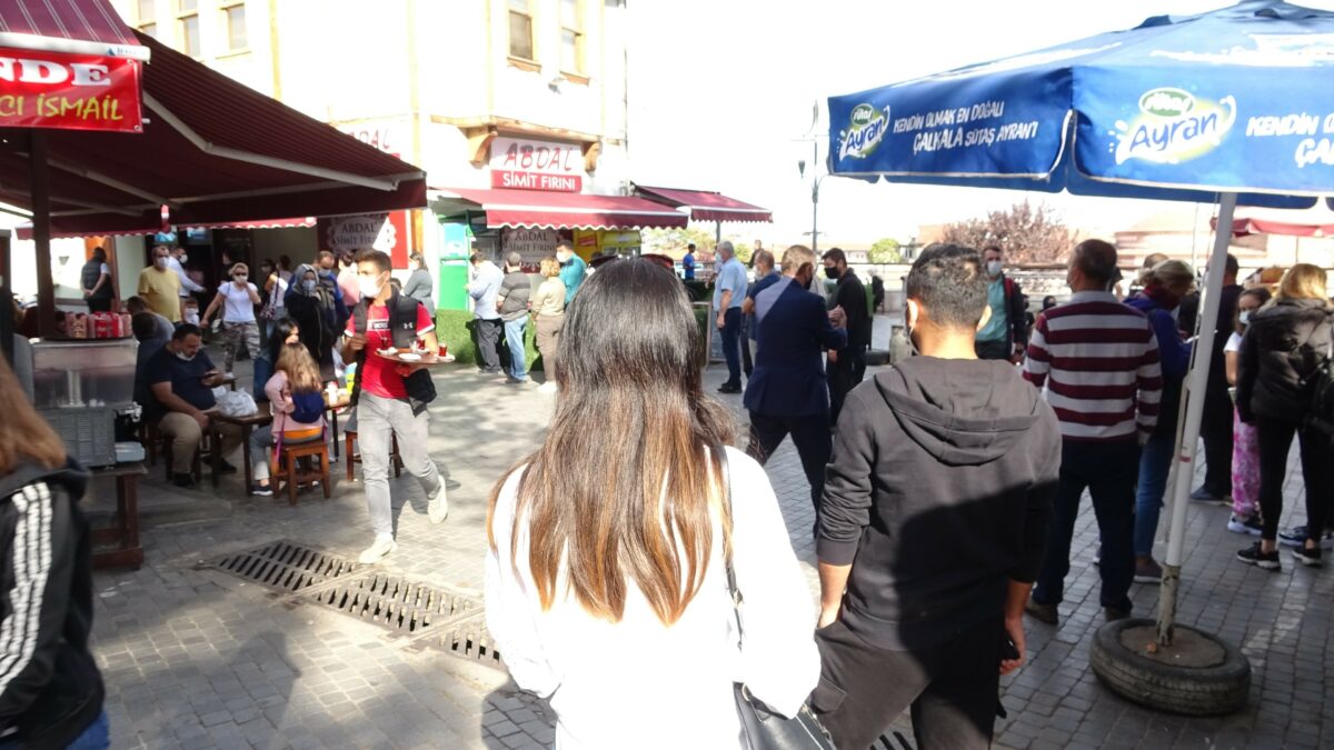 Bursa’da pazar günlerinin vazgeçilmez adresi Abdal Meydanı’nda simit almak isteyen vatandaşlar saatlerce kuyruk bekliyor.