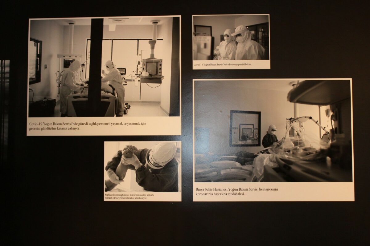 Bursa’daki hastanelerin yoğun bakımlarında sağlık çalışanlarının çektiği zorluğu fotoğraf kareleriyle sergiye taşıyan İhlas Haber Ajansı Muhabiri Samet Doğru da, “Tüm dünyada olduğu gibi Türkiye’de ve Bursa’da da sağlık çalışanları korona virüse karşı canla başla mücadelelerini sürdürüyor. Bizlerde bir gazeteci olarak o anları belgeledik. Yarına fotoğrafları bırakma sorumluluğunda bu görevi yerine getirdik. Bu fotoğrafların çoğu, korona virüs yoğun bakımı ve diğer salgınla mücadele eden ekiplerin çalışmalarından çekildi. Sağlıkçılar kadar olmasa da bizim işimizde çok zorlu. Çünkü insanların kaçtığı ortamlardan bizler girip fotoğraf veya görüntü çekmeye çalışıyoruz. Herkesin bu sergiyi gelip görmesi gerekir ki, sağlıkçıların neler yaşadığını yakından görsün. Maske, mesafe ve hijyen çok önemli. Tüm vatandaşlarımız bu kurallara mutlaka uysun” diye konuştu.