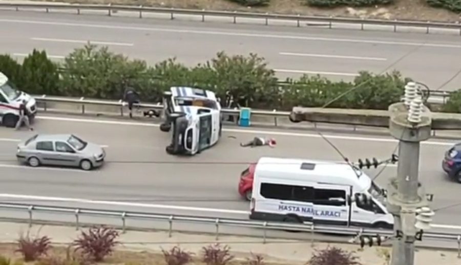 Bursa’da otomobilin yoğun siste arkadan çarptığı hasta nakil ambulansı takla attı. Kazada 5 kişi yaralandı.