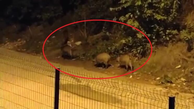 Mudanya ilçesinde aç kalan domuzlar ilçe merkezine indi. Bir sitenin önündeki çöpleri karıştıran domuzlar, sitede oturan vatandaşlardan tarafından cep telefonu kamerasıyla görüntülendi. Domuzlar bir süre çöpleri karıştırdıktan sonra ormanlık alana girerek gözden kayboldu.