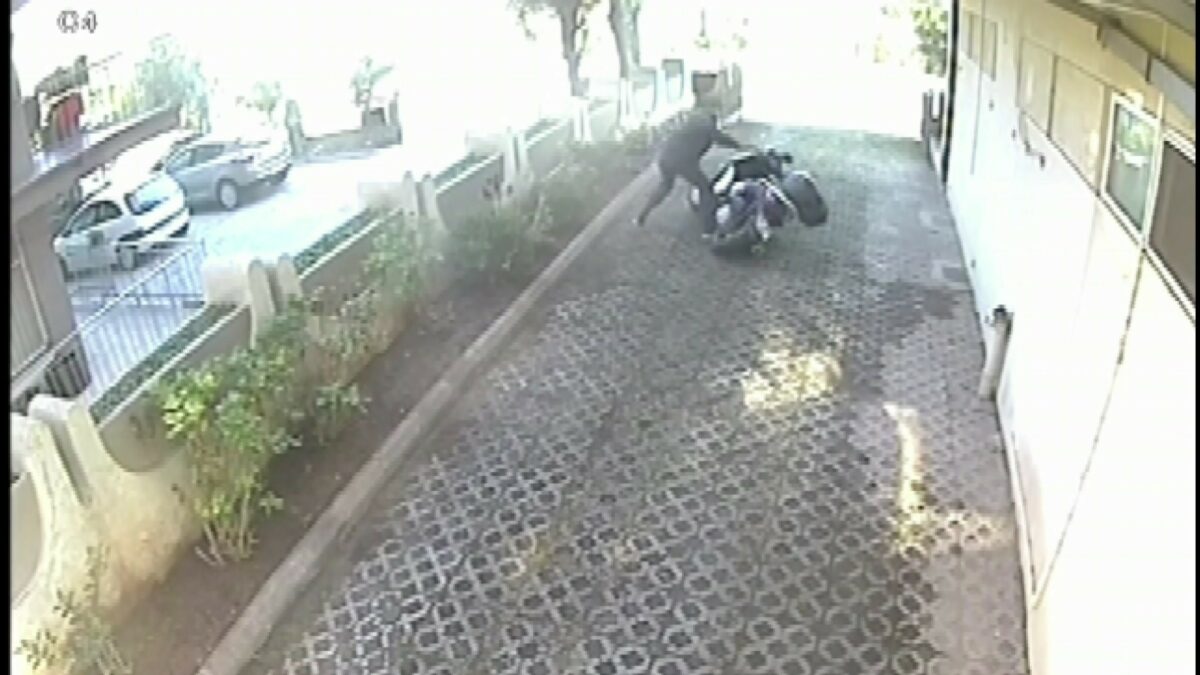 Bursa’da bir sitenin bahçesine giren hırsızlar, kilidini kırdıkları motoru sürükleyerek götürdüler. O anlar sitenin güvenlik kamerasına ân be ân yansıdı.