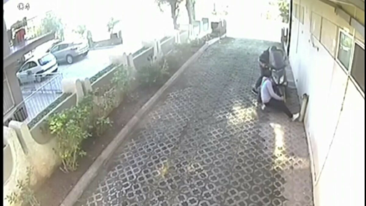 Bursa’da bir sitenin bahçesine giren hırsızlar, kilidini kırdıkları motoru sürükleyerek götürdüler. O anlar sitenin güvenlik kamerasına ân be ân yansıdı.