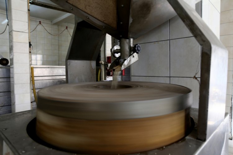 Tarihî Çukur Han’da 1935 yılında açılan dükkânlarında taş değirmende susam öğüterek sıcak tahin imal eden işletme, 84 yıl önceki usullü devam ettiriyor.