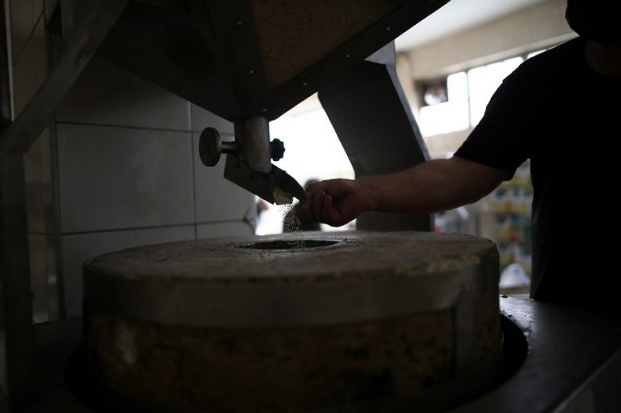 Tarihî Çukur Han’da 1935 yılında açılan dükkânlarında taş değirmende susam öğüterek sıcak tahin imal eden işletme, 84 yıl önceki usullü devam ettiriyor.