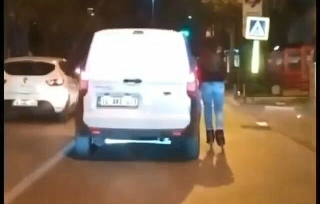 Bursa’da gecenin geç saatlerinde meydana gelen olayda, patenli genç kız tehlike saçtı. Bayır olan caddeden yukarı çıkmakta güçlük çeken patenli genç, bir kamyonetin yan camına tutunarak çıktı. Cep telefonu kamerasıyla kaydedilen genç, caddenin bitiminde ise araçtan ayrıldı.
