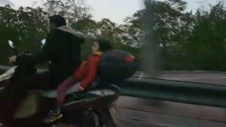 Bursa’da merkez istikamete doğru seyir halinde olduğu iddia edilen bir motosiklet sürücüleri görenleri şaşırttı. Motosiklet üzerinde yolculuk trafiği tehlikeye düşürdü. İlk görüntüde sürücünün arkasındaki çocuğun yolculuğu pes dedirtti.