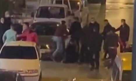 Bursa’da, iki grup arasında çıkan, koronavirüs tedbirlerinin hiçe sayıldığı tekmeli ve yumruklu kavga, cep telefonu kamerasıyla görüntülendi.