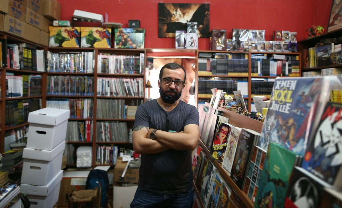 Pirinç Han’da Çizman adlı dükkânında 18 yıldır çizgi roman satan Levent Ertuğrul, 7’den 70’e çizgi roman tutkunlarını ağırlıyor. Teknolojiye rağmen hâlâ meraklılarına Türkçe ve orijinal dillerde çizgi romanlar temin eden Ertuğrul’u pandemi süreci olumsuz etkiledi.