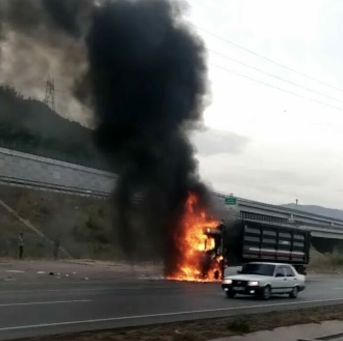 Yangın, İstanbul Bursa karayolu Gemlik ilçesi Kurtul Mevkisi’nde sabah 8.15 sıralarında meydana geldi.
