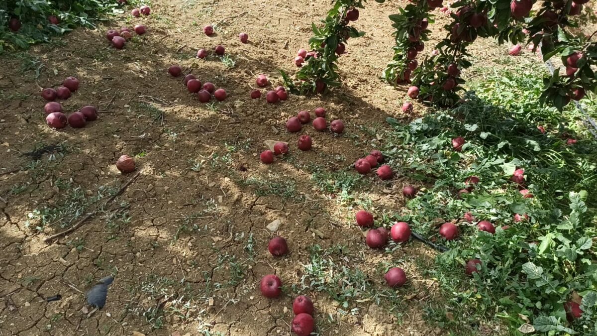 Bundan yaklaşık 10 gün önce bir fırtına oldu. Bu fırtına bu bölgemizdeki 4 mahallemizin çiftçisine zarar verdi. Özellikle armut ve elma bahçelerine fırtınanın çok büyük zararı oldu. Fırtına nedeniyle dalından koparak yere düşen elmalar ise meyve suyu fabrikalarına gönderiliyor.
