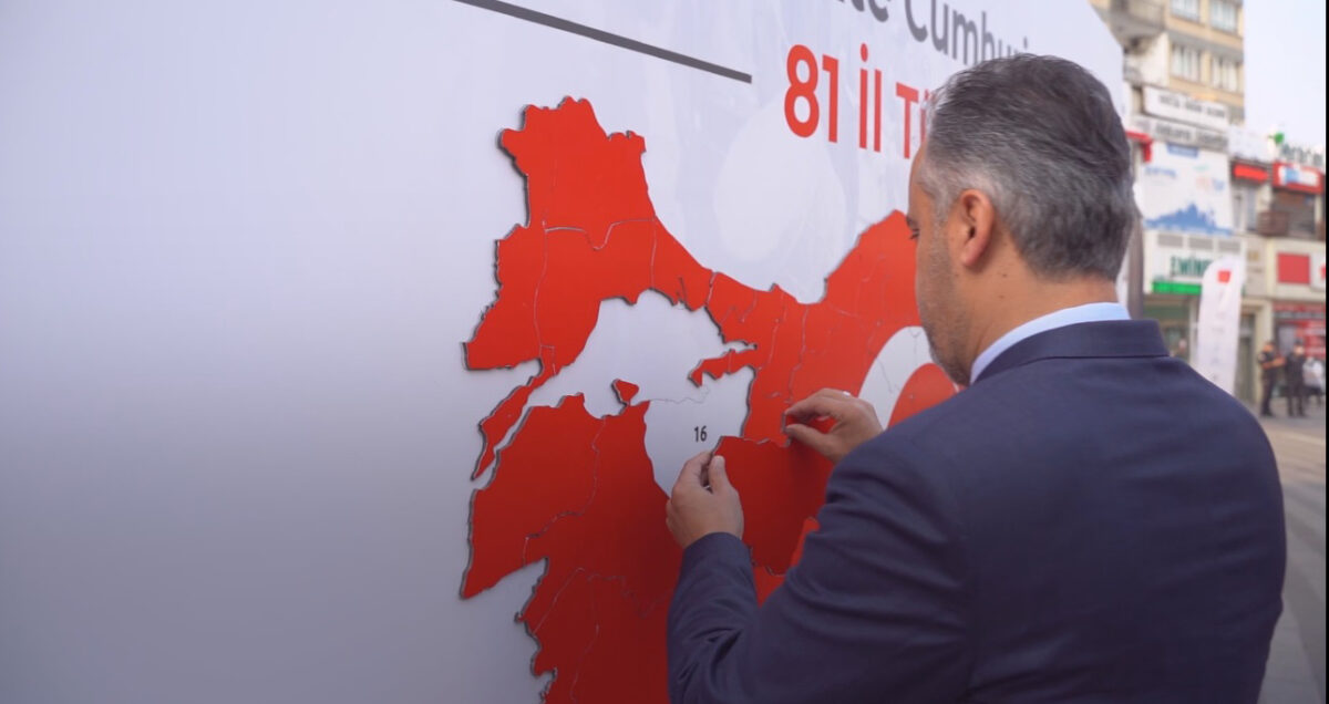 Haritanın son parçası olan Bursa maketini de yerine yerleştiren Başkan Aktaş, etkinliğe katılan vatandaşlara teşekkür etti. Maketin tamamlanmasıyla ortaya çıkan Türkiye haritası tüm vatandaşlardan büyük alkış aldı.