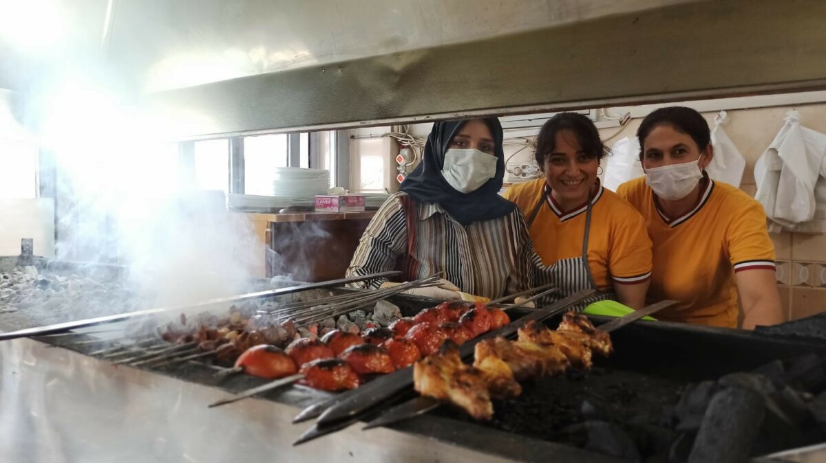 Fatma Yüksel ve Eda Çiftçi isimli iki kız kardeş, vefat eden babalarının 12 sene önce temellerini attığı Otosansit Sanayi Sitesindeki kebapçı dükkanının başına geçti. İki kız kardeş mangalın başına geçti.