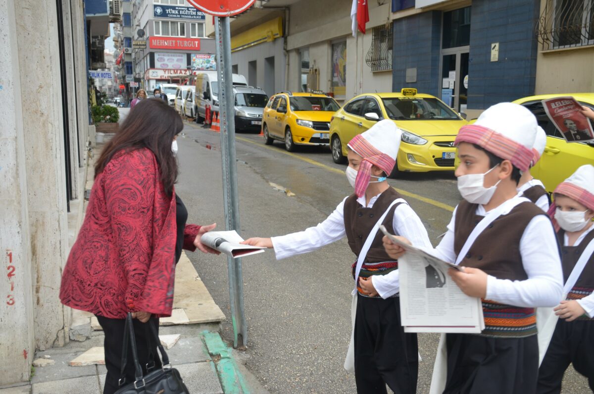 29 Ekim günü Gemlik sokaklarına çıkan gazeteci çocuklar, ilçenin sokaklarında cumhuriyetin ilanını müjdeledi.